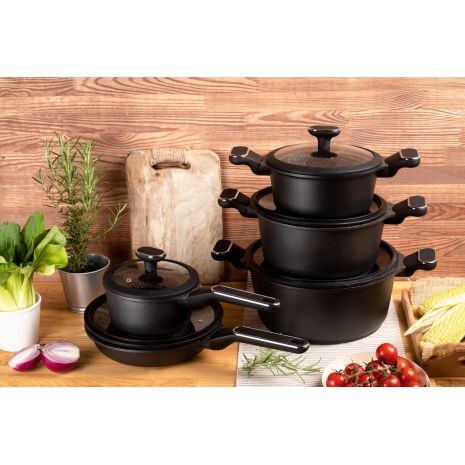 Σετ αντικολλητικά μαγειρικά σκεύη 10 τμχ σε Μαύρο χρώμα Edenberg EB-5631 - Διακοσμεί την κουζίνα σας !