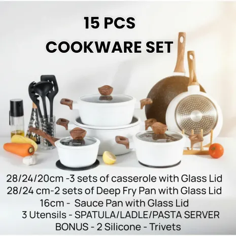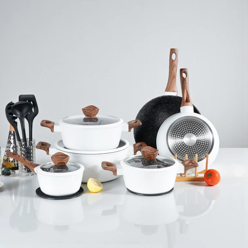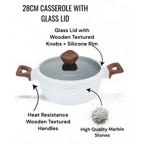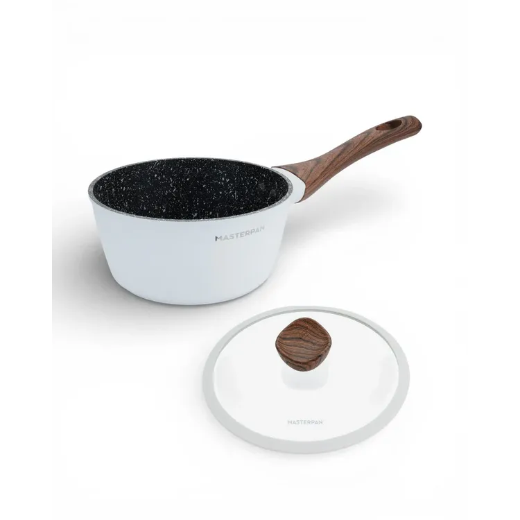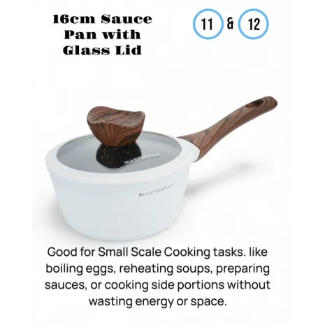 MasterPan, Σετ Μαγειρικά Σκεύη 15 τμχ με Τριπλή Μαρμάρινη Επίστρωση και πάτο Turbo Induction, White line MP 7002