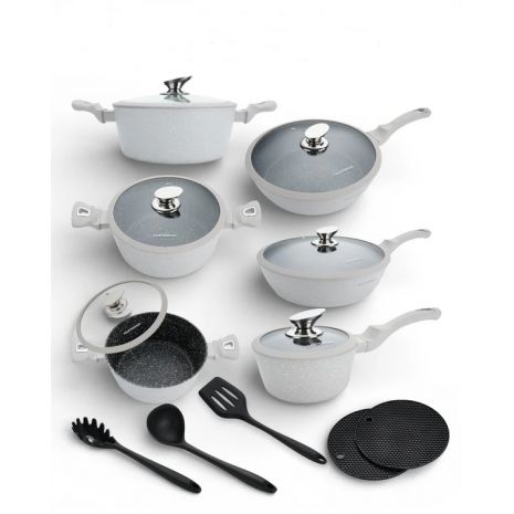 MasterPan – Σετ Μαγειρικά Σκεύη 15 τμχ με Τριπλή Μαρμάρινη Επίστρωση Γρανίτη & Πάτος Turbo Induction | MP-7004