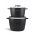 Διαθέτουν αντικολλητική κεραμική μαρμάρινη επίστρωση, χωρίς PFOA και είναι εξοπλισμένα με γυάλινα καπάκια με οπή απελευθέρωσης του ατμού.