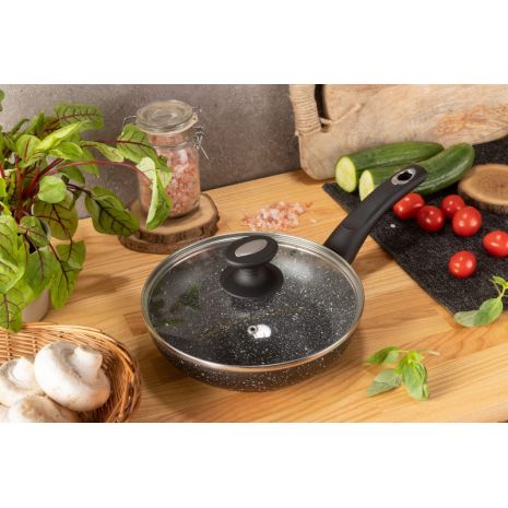 Edenberg, Αντικολλητικό Τηγάνι 26cm για Βαθύ Τηγάνισμα με Μαρμάρινη Επίστρωση και Γυάλινο Καπάκι EB 4110