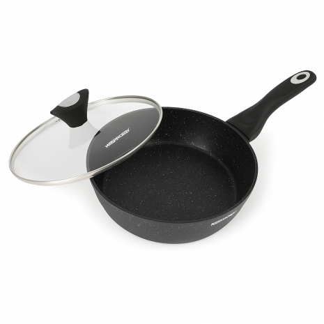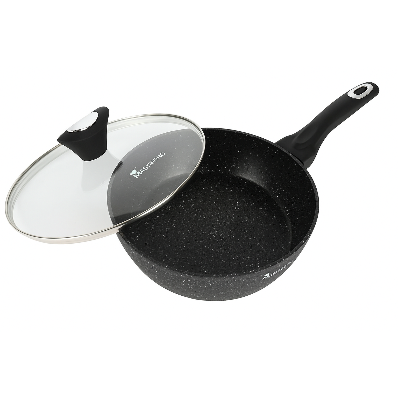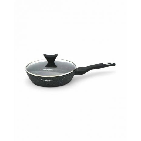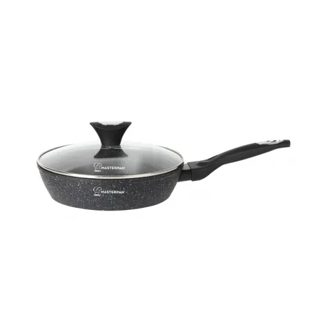 Masterpan, Τηγάνι 22 x 5.3 cm Αντικολλητικό για Βαθύ Τηγάνισμα με Μαρμάρινη Επίστρωση και Γυάλινο Καπάκι MP-2313