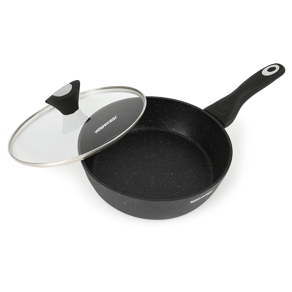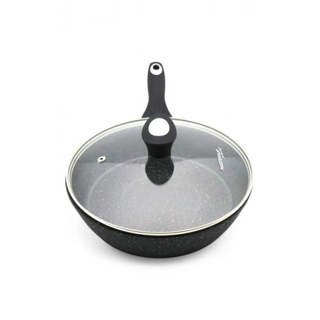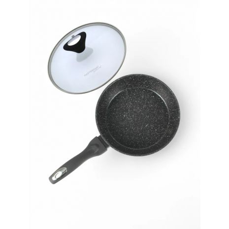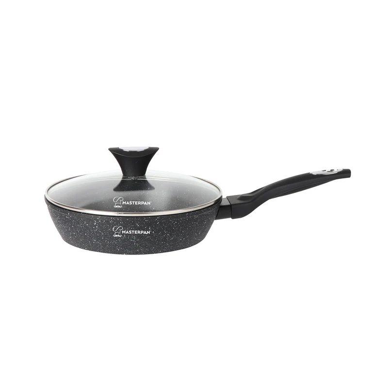Masterpan, Τηγάνι 26 x 6.3 cm Αντικολλητικό για Βαθύ Τηγάνισμα με Μαρμάρινη Επίστρωση και Γυάλινο Καπάκι MP-2375